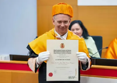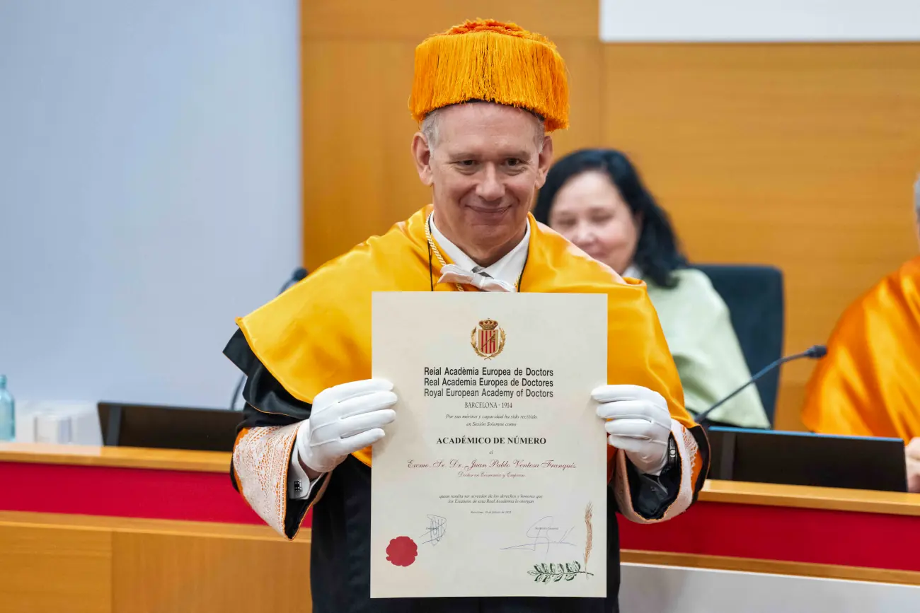Juan Pablo Ventosa, doctor en Economia i Empresa i soci fundador de la consultora Human Performance, va ingressar com a acadèmic de número de la Reial Acadèmia Europea de Doctors (RAED) durant una solemne cerimònia que es va celebrar el passat 18 de febrer a Foment del Treball, seu acadèmica. El recipiendari va llegir el discurs d’ingrés “Leadership Analytics: cap a un lideratge verificable i conscient”, en el qual va apel·lar a un lideratge empresarial que deixi de ser un concepte abstracte i arbitrari per esdevenir una disciplina verificable, conscient i adaptativa. Li va respondre en nom de la Reial Corporació l’acadèmic de número i degà de l’MBA de l’escola de negocis Esade David López.