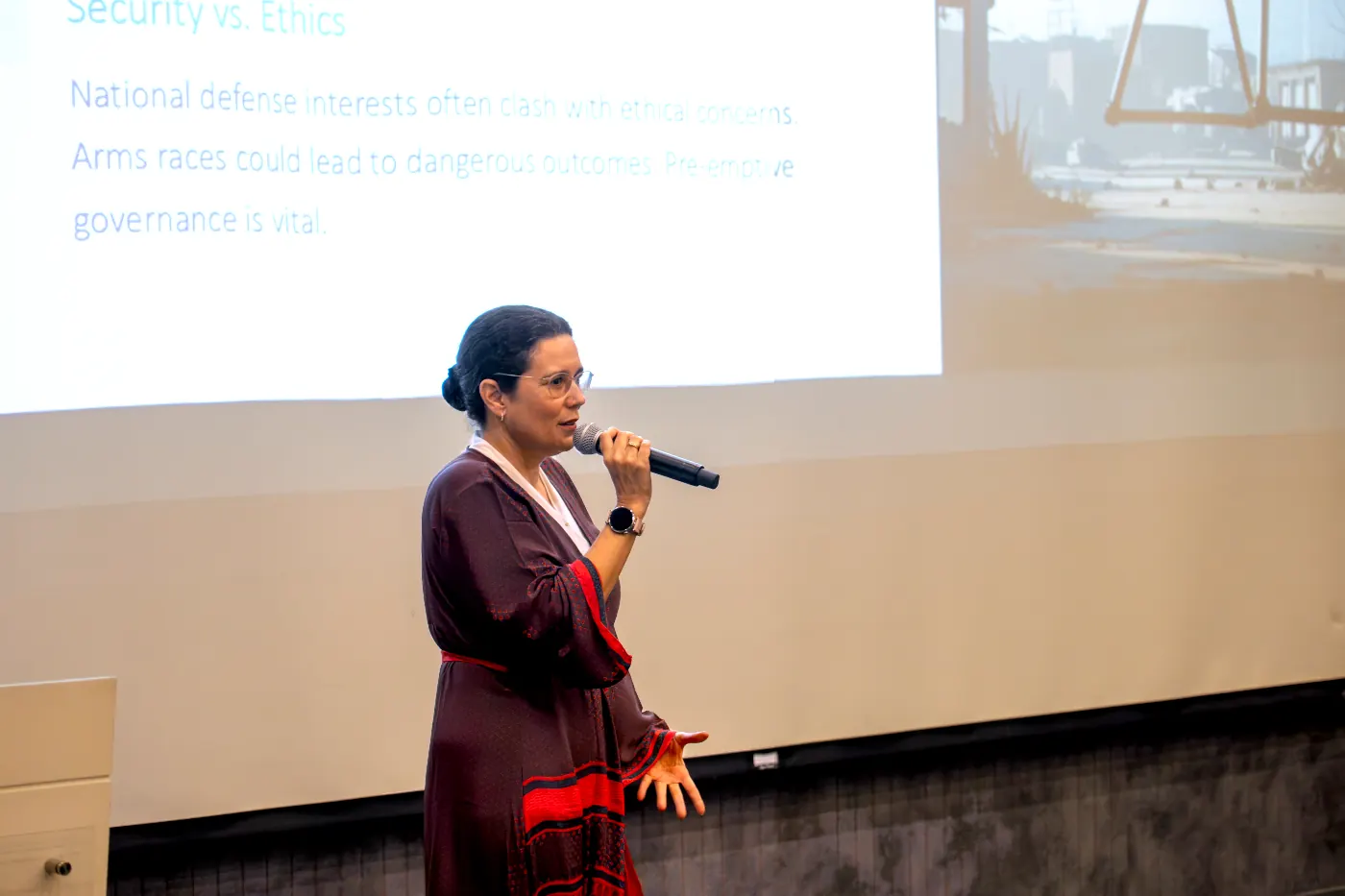 «Al adoptar un enfoque centrado en la ética, podemos navegar por estos desafíos y construir un futuro en el que la inteligencia artificial mejore nuestras vidas. Esto incluye la toma de decisiones, la transparencia y la responsabilidad en el desarrollo y uso de la tecnología. Diseñar soluciones concretas y coordinadas que permitan actuar para afrontar los retos actuales reales de esta tecnología, incluyendo la regulación, es fundamental. Abordar estos retos requiere la colaboración y participación de los sectores más afectados de la sociedad, junto con los necesarios conocimientos técnicos y de gobernanza. Es hora de actuar con ambición, sabiduría y en cooperación. Deberíamos temer no a las máquinas, sino a la intención que los humanos le ponemos a estas máquinas, y la ética debería ser el puente de comunicación entre ambos», consideró. La ponente, en este sentido, propuso una colaboración entre la industria, el mundo académico y las autoridades reguladoras para dotar de ética las nuevas tecnologías y establecer un marco regulatorio global para proteger los derechos individuales y evitar un futuro distópico, donde la tecnología controle a las personas en lugar de ser una herramienta al servicio de la humanidad.