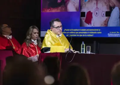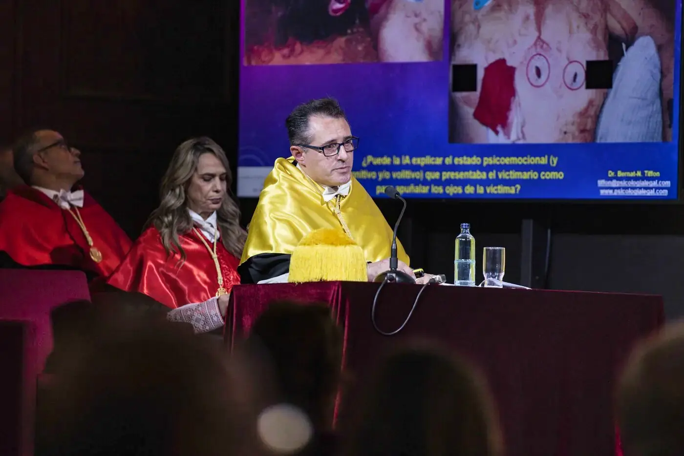 A recognised expert in legal and forensic medicine, the recipient began his address by asking whether artificial intelligence constitutes an indispensable ally or a rival capable of dehumanising forensic practice, presenting specific examples to illustrate how this disruptive technology could reconstruct criminological events, assess the cognitive and volitional state of the perpetrator, or analyse psychopathic motivation, while accelerating and objectifying expert work. In this regard, he reviewed advances in AI for assessing the risk of violence, citing promising studies. He also addressed ethical and deontological issues, stressing the need to maintain human supervision and professional responsibility.